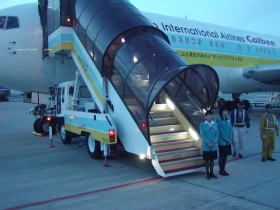 | 着陸後階段を降りてバスに乗り込みます。 |