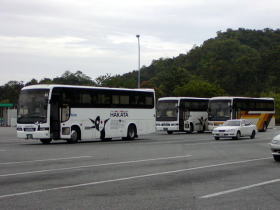 佐波川SAで休憩中のはかた号3台