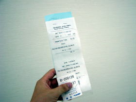 ここは鹿児島空港です。ここから秋田への旅がはじまります。まずは飛行機で東京へ向かいます。私の乗る飛行機はスカイマークの14時35分発の304便です。早速チェックインカウンターで搭乗手続きをします。そこで搭乗券をもらうわけですがこの航空会社の搭乗券は他の航空会社と違い感熱紙に印刷されたものでコストダウンを図っているようです。
