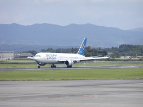 飛行機はすぐさま搭乗ゲートに横付けされ羽田からの乗客をおろし次の折り返しの飛行のための準備をしはじめました。放送でもフライトの案内がされ搭乗ゲートでは係員が出発の準備をしています。そしてフライト10分前の14時25分に搭乗改札が開始されました。乗客は搭乗ゲートで搭乗改札を受けると、早速機内に乗り込み座席に着きます。そしてシートベルトを締めて出発を待ちます。搭乗ゲートが閉まり飛行機はいよいよ滑走路の端へと移動します。そして14時40分過ぎにいよいよ離陸しました。飛行機はさらに上昇を続け、軌道にのりました。ここから東京を目指します。