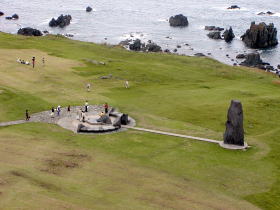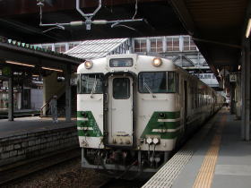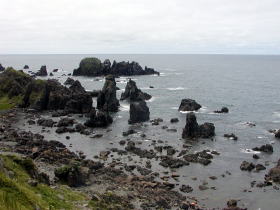 夜間東北道を走行した「フローラEX号」は6時過ぎに秋田に到着しました。私は駅前のファーストフード屋で朝食をすませ、男鹿半島の入道崎を目指すことにしました。私は秋田駅から男鹿行きの普通列車に乗りました。一時間ほど電車に乗車したあと羽立駅で下車しここからは路線バスの乗って入道崎に向かいます。約1時間弱ほど乗車した後入道崎に到着しました。入道崎に到着した私は早速周辺を散策しました。この入道崎は男鹿半島西海岸の最北端で断崖が続く海岸線から絶景が見えます。そしてここは北緯40度に位置していることから北緯40度の碑もあります。
