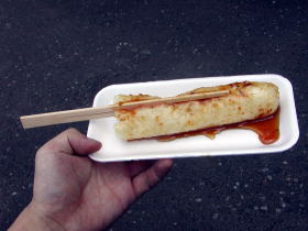 さらに散策を続けると売店のほうには「なまはげ」の人形がありました。ここ男鹿半島は「なまはげ」も有名なのです。この岬の北の端には灯台もありこの日はその灯台に登ることができました。灯台の上からの眺めがきれいで海岸線の絶景も見渡すことができます。灯台を降りた私は売店で「きりたんぽ」を買って食べました。この「きりたんぽ」は秋田こまちで作られて餅みたいな感じですが独特の味がしておいしかったです。