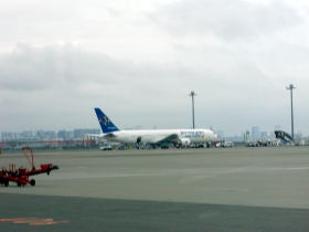 飛行機は定位置で止まりタラップが取り付けられました。そして搭乗口が開き乗客はターミナルビルへ移ります。