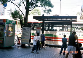 | 川崎駅前乗り場です。バスは日東交通 | 京浜急行の車両です。 | |