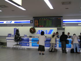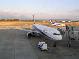 いよいよ東北への旅が始まるわけですが、まずは飛行機でいったん大阪に向かいます。私の乗る便は16時50分発の全日空運の大阪行きです。さっそくチェックインカウンターで搭乗手続きをします。そして大きな手荷物を預けました。まだ時間があるので展望デッキで飛行機を眺めました。しばらくたつと16時10分頃私が乗る予定の飛行機が大阪からこの空港の滑走路に着陸してきました。
