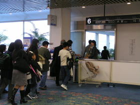 | チェックインカウンターで乗車手続きをします。 |