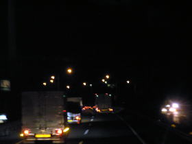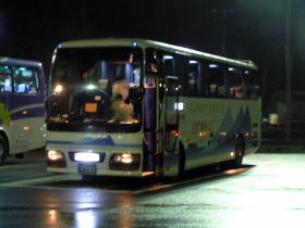 「アルカディア号」は名神道をひた走ります。吹田JCTを過ぎたごろ西側にエキスポランドの観覧車がイルミネーションされて綺麗に見えました。バスはしばらく名神道を走行し京都南ICからいったん高速道を降りて京都駅に向かいます。そして京都駅で最後の乗客を乗せて21時13分に再び走り出します。ここで交代乗務員が自己紹介及び走行行程や車内設備などの案内がなされたあとビデオでの車両設備の案内がなされました。バスは京都東ICから再び名神道に入り22時24分に米原JCTより北陸道に入りました。「アルカディア号」は北陸道を北へ快走します。