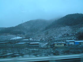 夜が明けました。雪が薄っすらとあります。 |