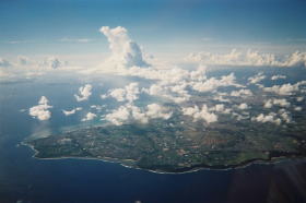 いよいよ離陸です 那覇市内が見えます 沖縄本土南部が見えます 桜島が幻想的に見えます