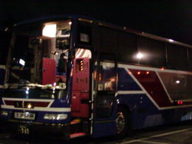 さつま号は関門橋を越えて本州に入り真夜中も休まずに走行し大阪を目指します。そして午前5時ごろ「皆さんおはようございます。バスはまもなく三木SAに到着です。ここで10分間の休憩をします」とのアナウンスです。バスは三木SAに停車をし休憩をします。ここでちょうど福岡から大阪へ向かう西鉄バスの「ムーンライト号」も停車していました。(注:2004年3月現在では「さつま号」の上りが南国交通担当の日は「ムーンライト号」の上りは阪急観光バス担当になっています)三木SAの休憩を追え再び大阪へ向かいます。あたりは明るくなり始めました。「さつま号」はいくつかの停留場で一部の乗客を降ろし高速道を降りて千里ニュータウンでも乗客を下ろしました。そして6時20分頃新大阪駅に到着しました。私はこの新大阪駅で降りました。「さつま号」終点大阪梅田へ向かって走っていきました
