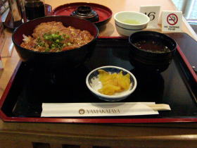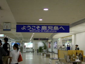 飛行機は着陸してから定位置で止まりタラップが取り付けられました。そして搭乗口が開き乗客はターミナルビルへ移ります。そこでは「ようこそ鹿児島へ」の看板が見えます。そして乗客はターミナルビルに着き手荷物を預けた乗客はここで手荷物を受け取ります。手荷物を受け取って出口を出た私は空港ビルにあるレストランで夕食をとる事にしました。私は鹿児島の名物料理ということで薩摩黒豚のカツ丼を食べました。