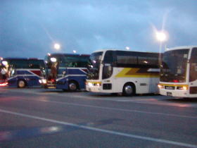 バス停でしばらく待っていると先に鹿児島交通の大阪ミナミ行き「トロピカルライナー」が3台で着ました。そのあと西鉄バスの福岡行き「桜島号」が2台できました。そして九州産交バスの神戸・尼崎行き「トワイライト神戸号」も2台できました。