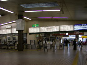 ここは新宿駅西口にある新宿高速バスターミナルです。私は昨日から鹿児島→福岡の高速バス・福岡→東京の夜行バスと乗り継いで今朝このバスターミナルにやってきました。いよいよここから立山黒部アルペンルートの出発点である信濃大町まで行きます。新宿からだとJR特急の「あずさ」がありますが私は安く移動しようと思い高速バスで移動することにしました。この新宿高速バスターミナルからは信濃大町・白馬方面行きの高速バスが出発していますが。私が新宿についたのが9時半ごろでこの日の朝発の便が8時と9時発でそのあとは午後出発ということで。私は10時50分発の松本行き「中央高速バス」で松本まで行きそこから鈍行列車で信濃大町に行くことにしました。