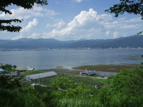 諏訪湖 走行中のバスからも見えます。 諏訪湖サービスエリアからも見えます。 長野県南部にあるとても眺めの良い湖です。