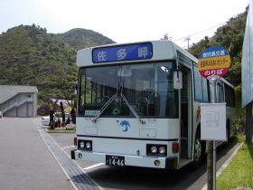ぶらり路線バスの旅 ぶらりと普通路線バスに乗るのもいいでしょう。 たいていの主要観光地にはバスでいけます。 中には2時間程度かけて一般道を走る路線などもあります。 ゆっくりと流れる車窓を楽しみながらぶらりと移動するのもいいでしょう。 (写真:佐多岬まで約2時間でアクセスする路線バス) |