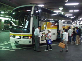 夜行バスの旅 夜行バスは夜出発して翌日の朝に目的地に到着するので時間が有効に使えます。 また宿代わりに使えば宿泊費も抑えることができます。 (写真:大阪を出発する福岡行き夜行バス「ムーンライト号」) |