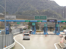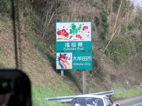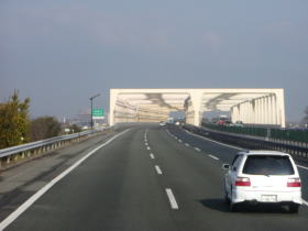 10時25分頃「ブルーロマン号」は熊本を後にして福岡県に入ります。バスは久留米インターチェンジを目前にして左側に「成田山久留米分院の慈母大観音」が見えます。バスは久留米インターチェンジを通過して筑後川を越えます。この筑後川にかかる橋は珍しく鉄橋になっています。バスは筑紫平野をひた走り鳥栖JCTを通過します。