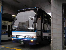 | 宮原サービスエリアで休憩中の「ブルーロマン号」 |