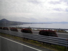 「ブルーロマン号」は徐々に進路を南に変えて走行し不動山トンネル・俵坂トンネルを通過するといよいよ長崎県に入ります。そして右側に大村湾が見えてきました。大村湾はなんとも綺麗です。