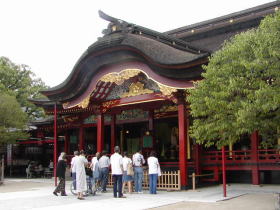 11時半頃博多駅交通センターに到着した私は博多駅近くのラーメン屋で博多ラーメンを食べました。このラーメン屋のラーメンは味・麺の固さなどを選ぶことができます。このラーメンはとてもおいしかったです。ラーメンを食べ終わった私は100円バスで天神まで向かい西鉄福岡(天神)駅から西鉄電車で大宰府まで向かいました。大宰府駅から天満宮までは様々な店があり、おみやげ、梅ヶ枝餅など売っています。池には鯉もいます。私は大宰府天満宮を散策し梅ヶ枝餅を買い、しばらくした後大宰府駅から再び西鉄電車で天神に向かいました。