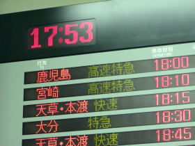鹿児島行きの最終案内です。 鹿児島行きは6番乗り場です。