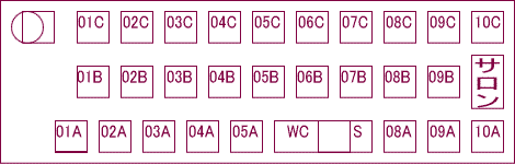 WCはトイレ、Sはサービスコーナーを表します。
