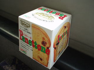 | ヘッドホンもあります | 軽食です。パネトーネと呼ばれるパンです |