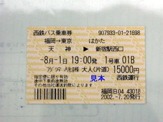 | 西鉄天神バスセンターで購入できる乗車券です。 | 京王新宿高速BTで購入できる乗車券です。 |