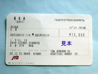 | 西鉄旅行で発行している乗車券です。 | コンビニ(ローソン)で発行した乗車券です。 |