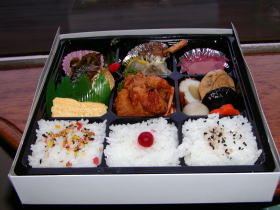 しばらく経つと7時9分に到着です。ここで約5分間停車です。その間に弁当を購入します。私は「幕の内弁当」を購入しました。