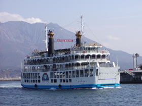 市内には路面電車が走っています。 美味しい鹿児島ラーメンです。 桜島と鹿児島市を結ぶ桜島フェリーです。 桜島です。