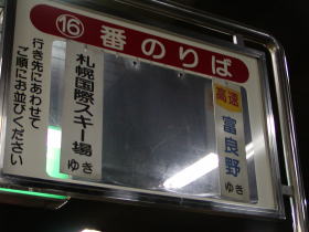 | 富良野行き高速バス乗り場です。 | 富良野行き「高速ふらの号」が入線してきました |