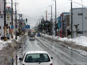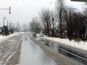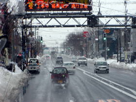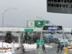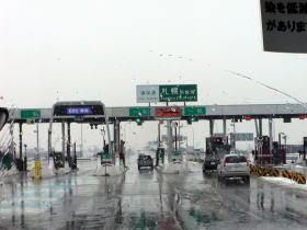 | 札幌市内も雪が積もっています。 | 札幌料金所から高速道に入ります。 |