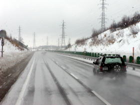 | 雪の一般道も走ります。 | 山道も走ります。 |