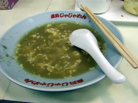 そしてこの「じゃじゃ麺」をあっという間にたいらげてしまいましたが、なんとこの「じゃじゃ麺」は食べてしまったあとに生卵を入れて、ゆで汁と肉味噌を加えて「鶏卵湯(チータンタン)」と呼ばれる卵スープ