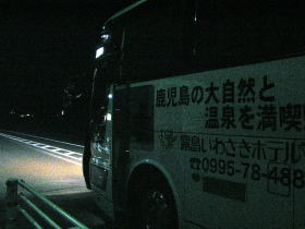 私はこれから愛・地球博を見に行くために名古屋に行くわけですが旅費を安くさえるために高速バスで行きます。鹿児島から名古屋行きの夜行バスは無いので大阪行きの夜行バスに乗ります。私は鹿児島空港南バス停に到着しバスの到着を待ちます。