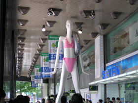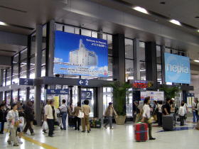 私はさっそく名古屋駅周辺を散策しました。やはり「愛・地球博」のPRなどがされていました。また名鉄バスセンター前ではナントも巨大な人形が立っていました。どうやら「ナナちゃん」と呼ばれているようで名古屋の名所(?笑)のひとつのようです。私は大きい荷物を持っているのでチェックインする予定のホテルに荷物を預けました。