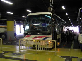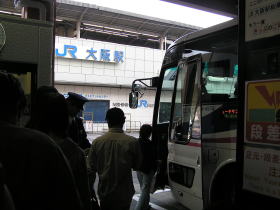 | 大阪梅田に到着です。 | 名古屋行きの高速バスに乗ります。 |