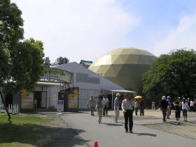 バスは国道を北に走り吹田インターチェンジから高速道に入るわけですがその直前で大阪万博のシンボルの「太陽の塔」を見かけました。愛知万博に行く途中ということでなんともスゴイ偶然です!バスは名神高速に入り天下分け目の天王山トンネルを通り大阪から京都へと走ってきます。さらに滋賀まで走ってきたところで9時30分ごろに多賀サービスエリアで10分ほどの休憩です。
