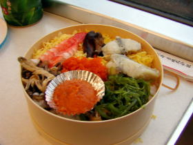 しばらく経つと7時9分に到着です。機関車の交換のために約5分間停車です。その間に弁当を購入します。私は「ふぐ寿司」を購入しました。