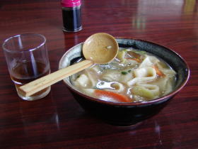 別府温泉そして地獄めぐり高崎山をあとにした私は別府駅前に行き駅前の定食屋で「だごじる」なるものを食べました。この「だご」とは団子のことで麺が団子のように太いのでその名がついたようです。