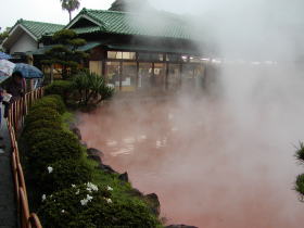 血の池地獄は池の中が赤くなっておりまさしく血の池のようです。竜巻地獄は間欠泉で勢い良く熱湯が吹き出ました。