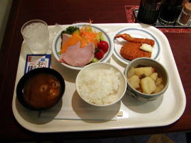 瀬戸内海を航海したフェリーは5時半に神戸中突堤に到着です。ここで一部の乗客を降ろします。私は起きて朝食にすることにしました私は和朝食を食べました美味しかったです。