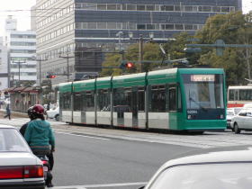 路面電車は道路の真ん中をしかもゆっくりと走ります。