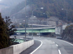 「桜島号」は8時過ぎ頃、肥後トンネルに突入します。このトンネルは九州で一番長く全日本でも10位の中に入ります。この肥後トンネルも通過するのに約4分半ほどかかります。この肥後トンネルを通過してからしばらくトンネルの連続です。これからも九州山地の壮大さを実感できます。また一部の区間では対向斜線側(東側)が一部高くなっているところもあります。8時15分頃「桜島号」はあの有名は球磨川を越えます。この球磨川はとても綺麗です。