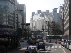 しばらく九州道を走り大宰府インターチェンジから福岡都市高速に入ります。この都市高速道路からは福岡市内の市街地は勿論福岡空港も見えます。そして天神北ランプから福岡都市高速を降りて渡辺通を走行します。渡辺通には様々な商業施設やビル郡などが並びその中には天神BCがあるソラリアターミナルビルもあります。「桜島号」は専用スロープを上りソラリアターミナルビルの3階に入り10時6分頃に定刻どおり西鉄天神バスセンターに到着です。