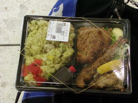 デパ地下で購入した弁当です 下関港の夜景も見えます。
