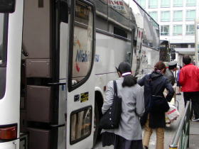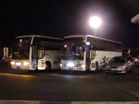 今夜は5台運行です。乗車改札をしてバスに乗車します。 東京への長旅の始まりです。 2号車「博多の女」号です。