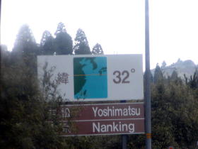 桜島が美しく見ます。 北緯32度線の看板です。 いよいよ加久藤トンネルを通過します。 トンネルの中は対面通行になっています。
