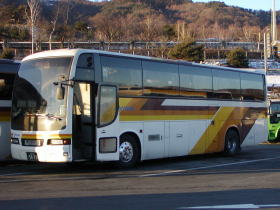 宮原SAで休憩中の「桜島号」 飯田山が間近に見えます。 金峰山も見えます。 高速道を難なく走ります。